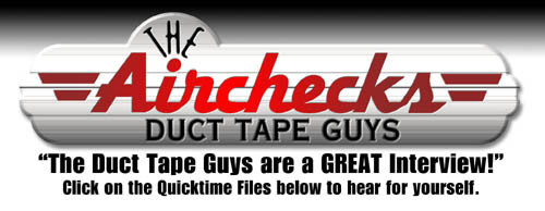 Here are some samples of Tim (and sometimes Jim) on the radio.![]() The Bob and Sheri Network (syndicated nationwide) Duct Tape as a talk show topic = caller magnet! Radio U (radiou.com) Riot on the Radio talks with Tim about Father's Day uses for Duct Tape. Randy and Spiff Fox 97 Atlanta The Duct Tape Guys are Family Friendly! HomeFront with Bob Zeeman Minnesota Public Radio (NPR) And, in a longer format (20 minutes +) the Duct Tape Guys STILL hold their own... in fact, a national CBS Radio call in show said, "We've never had so many calls on a topic in our history - do you mind if we keep you on for an additional half hour?" These airchecks are extended versions of our interview-ability: CJAD - Holder Tonight Interview with Peter Anthony Holder, Montreal Allan Handelman Coast to Coast Click here for Interview Briefings and Contact Information. Watch our television clips, too! click here |