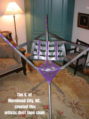 Duck Boat Wins the Crowd Sean H., Lee K., and Sean McK. of Coventry & Cranston, RI made this really ducky boat for an Art Boat competition. They used ten rolls of duct tape, chicken wire, and... well, click here to see more photos and get the whole store at Sean's web site. |