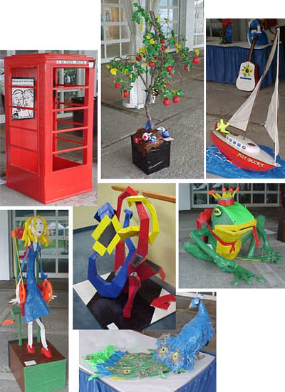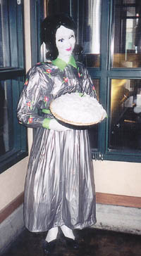 Canadian Duct Tape Art, Eh! The art on the left was created by students of the Ontario College of Art and Design for the Toronto Toronto, Ontario, World Wide Duck Tape Days which was part of Harbourfront Centre’s JVC Jazz Weekend. The winner of the $2000 prize was the duct tape marionette (lower left of the montage). The white wedding dress (right) was also created for this exhibit. See more duct tape fashion in our fashion pages. Alaskan Pie Wench |