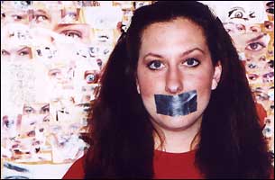| (above) KROQ (California) radio listener, Jacqueline, duct tapes her mouth nightly to prevent spiders from entering. We bet it does a darn nice job of waxing her upper lip, too.