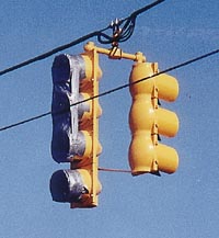 | Above: Mark D. of Port Huron, MI, sent us this photo of one of the towns signal lights. Notice how duct tape has been added to create driving excitment. It also makes it impossible to get a ticket for going through a red light. | |||||||