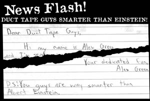 | These are some of the more bizarre uses of duct tape that we have been sent since we released our first Duct Tape Book. Got something to send us? Click here for photo submission instructions. Think these are weird? Check out Duct Tape Wall Tapings! More recent submissions are posted on following pages. |