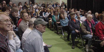 For media recommendations, click here. (below) A common scene, standing room only audiences. Next year, the show producer said theyd book a larger auditorium. |