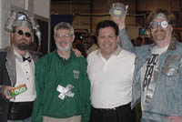 (right) No, its not a cheap community theatre presentation of Star Wars, Its Jim showing how to use a toilet plunger to deal with finicky bathroom faucets... (dont ask). (left) Backstage, helden tenor Jake Loyer provides an operatic voice for Captain Carl, the mind reading pirate at the Erie Builders Association Show. |