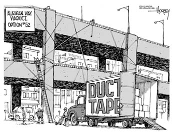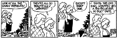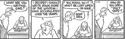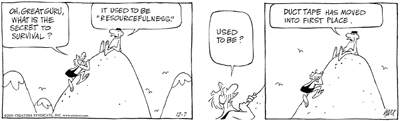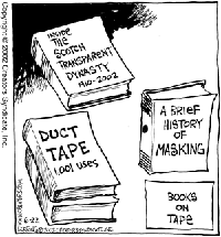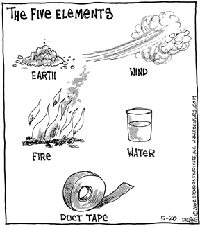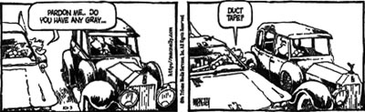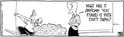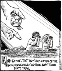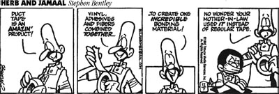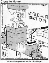 (left, above,and right) Strange Brew by John Deering ©creators.com (by the way, Strange Brew is one of Tim (the Duct Tape Guy)'s must-read-daily cartoons. Thanks John for your duct tape evangelism efforts and a tip of the hat to our Duct Tape Book genre. | ||||||||||||||||||||||