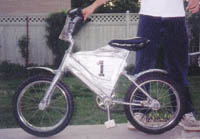 (left) Nick from Salt Lake City, Utah got together with his brother, Jimmy, and converted a pink bike that a friend had given them into this fine duct tape fashion statement. Nice Goin guys! Ill bet your wished that he had a roll of duct tape on hand.