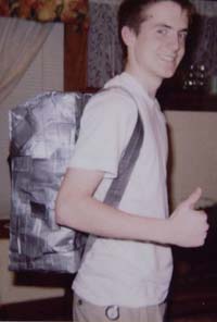 Ron Khare (left) skyrocketed to the top of his schools Cool List when he showed up sporting his homemade, 100% Duck tape backpack. Ron has generously shared his instructions on how you can make your own Duck Tape Backpack at: