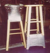 However, the rubber covers didn't last long when smacked against the very sharp corners of hardwood playing surface, not to mention the unattractive black smudge a misdirected blow might leave. Of course, you have guessed the solution - a generous wrapping of duct tape over the rubber covers! Presto - inexpensive, easily replaceable, damage-free outer covers for the flimsy rubber covers! Properly preparing one's mallet for a "floor down" shift became a ritual into which new members of the crew had to be initiated.