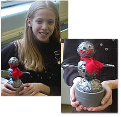 (left) Sixth grader Michelle M. of Tallmadge, Ohio created this solution to the ever-present melting snowman problem. Make it out of duct tape! Good thinking, Michelle! And remember, Duck® brand duct tape comes in white for the classic snowman look. Thanks to your teacher Bob for sending this to us.