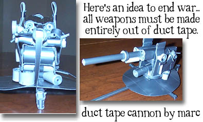 Here's a duct tape model of a cannon I did for a class (see below). --- Marc C. T., GA