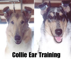 Diane W. of Krum, TX, sent us these photos of her collies, Kelli and Star. They are getting ready to be shown and their ears must tip over at the top. Duct tape to the rescue!