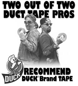 Oh, one more amazing fact: Every year The Duct Tape Guys consume (they use it, they don't eat it) over 200 times their weight in duct tape! And believe us, THAT'S A LOT of duct tape!