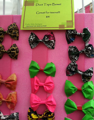 | Duct Tape Bows (left) Just spotted at the Appleton Art Fair. Duct Tape Bows - great for girls' hair or as a bowtie for guys who spill a lot. |