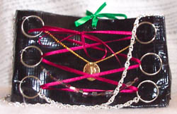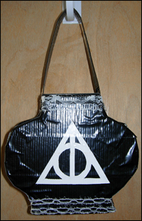 Karen K. a Duct tape Design Diva (at under 18 years old) from New Jersey, impressed us with this collection of purses. Her graphic design abilities are equally impressive! Check out her web site. Karen also came up with DuctTape-Orade - the fictional beverage that's featured in our May, 2006 Duct Tape On a Roll newsletter. And, check out Karen's Harry Potter Collection purses at the bottom of the page here. | |||||||||||||||