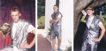 | Duct Tape Stud Muffin James S. of Rome, Georgia had his senior pictures taken in a duct tape suit that he fashioned himself. He also made his girlfriend a skirt. Nice work, James... send us your duct tape wedding tux and gown photos when they happen! |