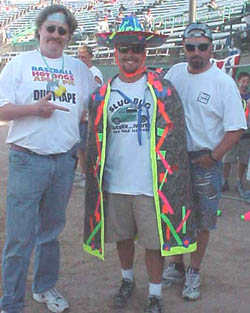 ![]() Tim (left) and Jim (right) join Nick at the St. Paul Saints (minor league baseball) Salute to Duck Tape Night. Nick is trying to win $10,000 by staying at the Saints park all summer long - getting his food and other needs filled only via internet. We're sure that the duct tape poncho that he is wearing will help out during inclement Minnesota weather. Good luck, Nick! Hey, Nick: If you wanna pick up some cool duct tape apparel online? Check out our Duct Tape Pro Shop! You can shop online conveniently and securely! |