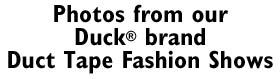 | Jim and Tim - the Duct Tape Guys and Duck®brand Duct Tape sponsor salute to Duck Tape Nights at Major and Minor League Sporting Events and at Malls around the country. This page will feature some of the contestants from our various events. To find out if there is a Salute to Duck Tape Night coming to your area contact Duck® brand Products at 800-321-1733. | ||||||||||