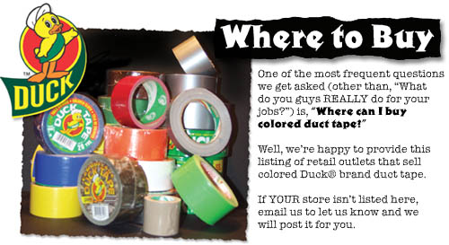 Not all stores carry all colors, but in general, these stores carry colored duct tape: